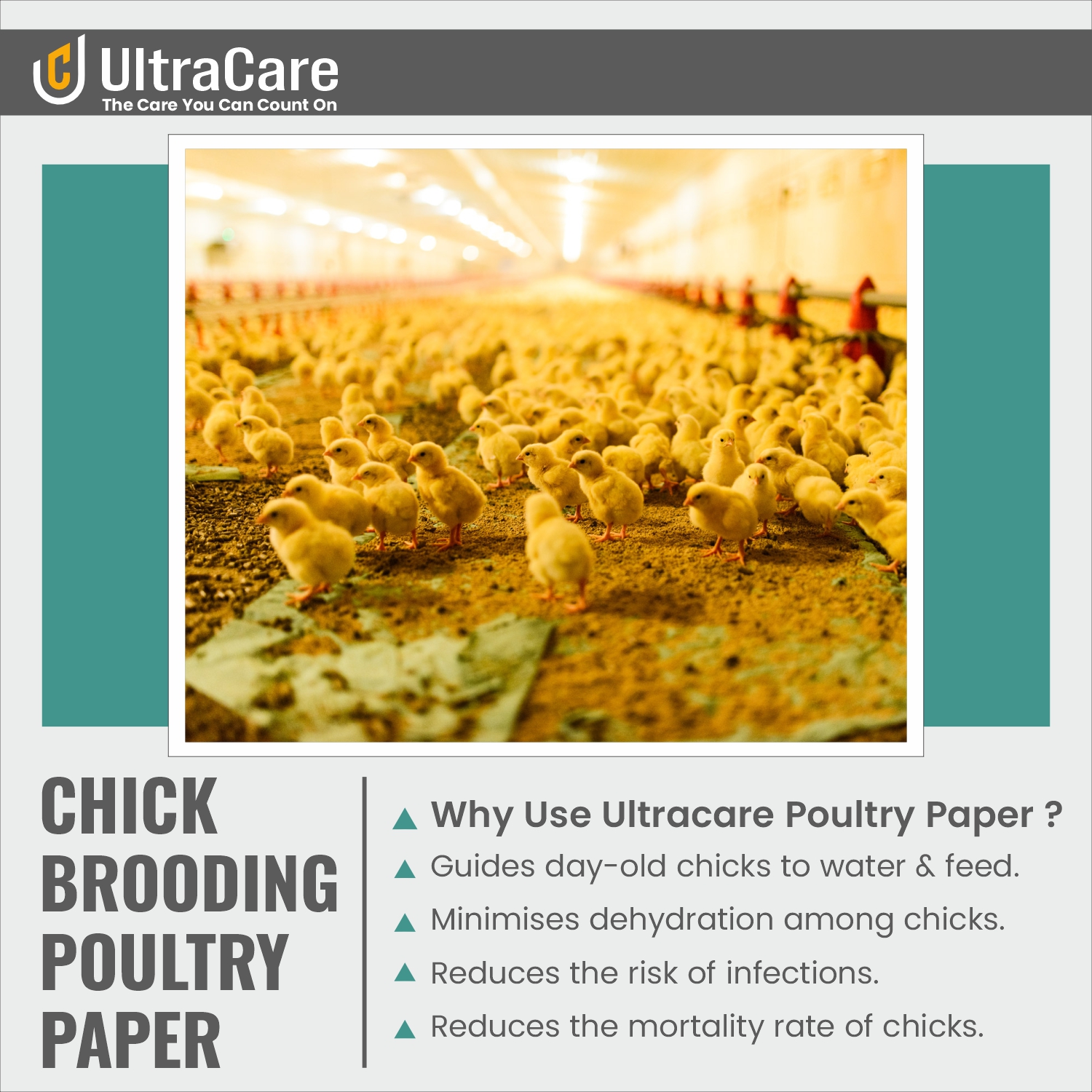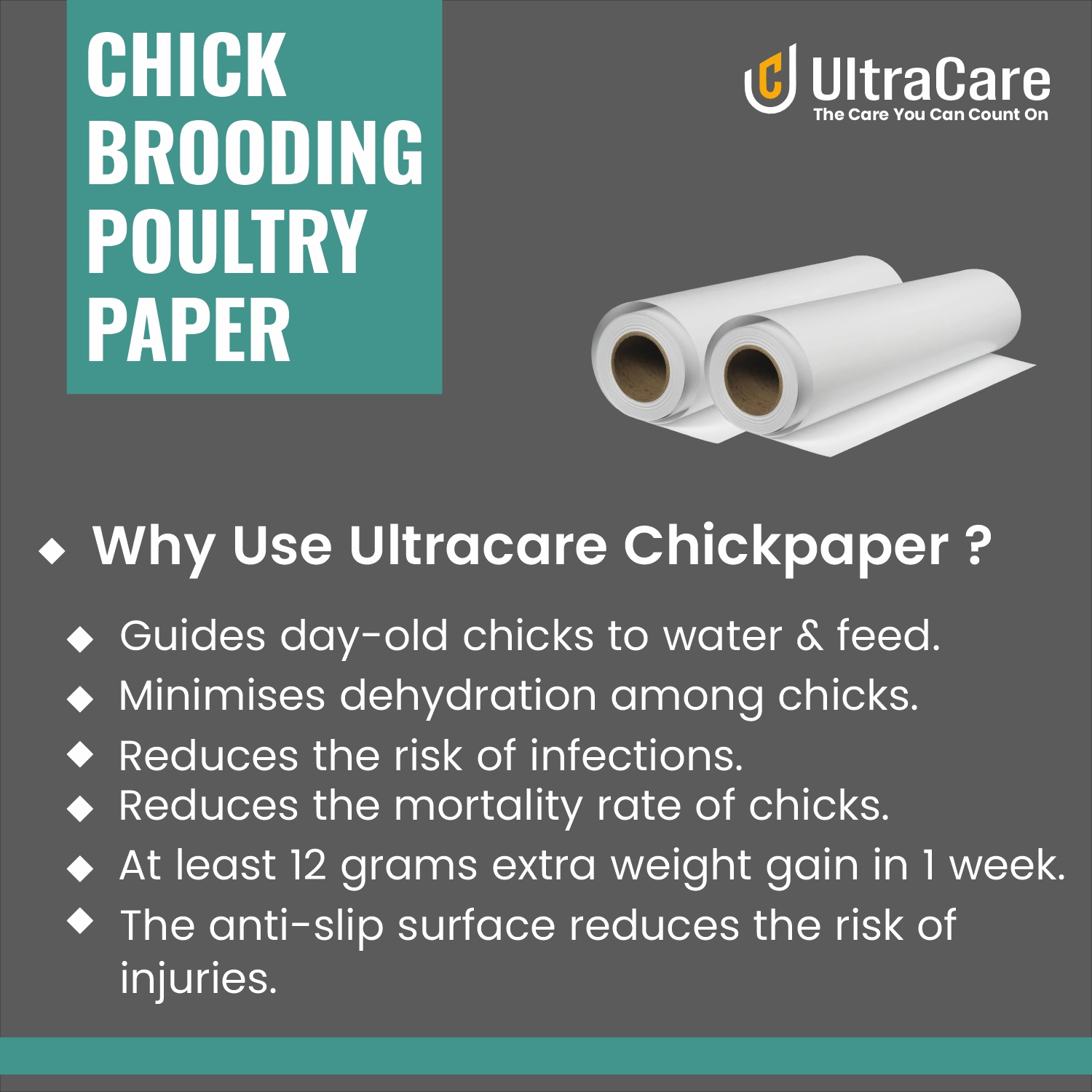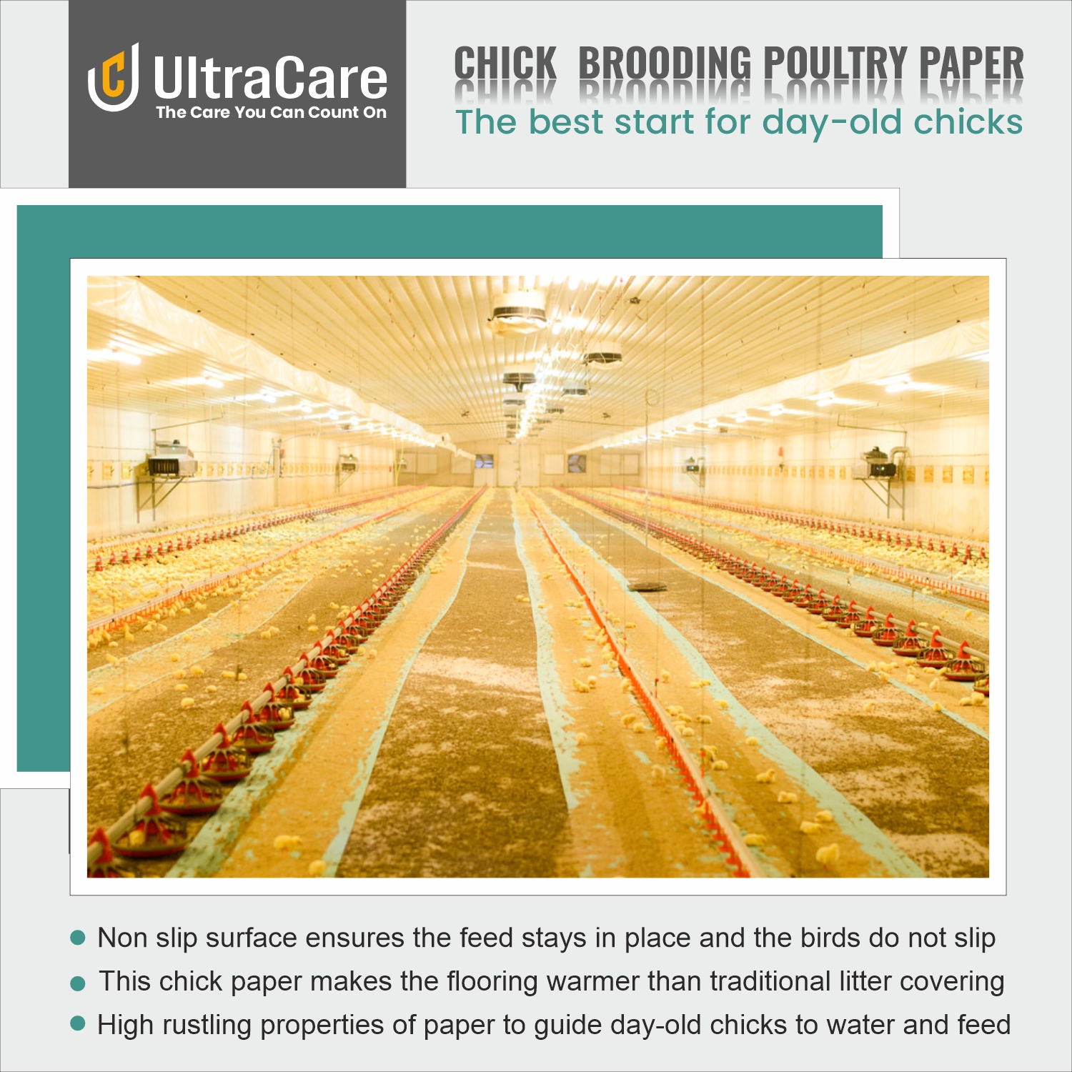 Provides safe footing for day-old chicks, reducing leg injuries