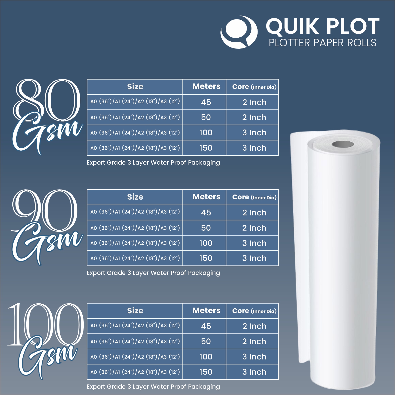 • Available in Multiple GSM & Sizes – Choose from 80, 90, and 100 GSM grades in standard A0, A1, A2, and A3 formats