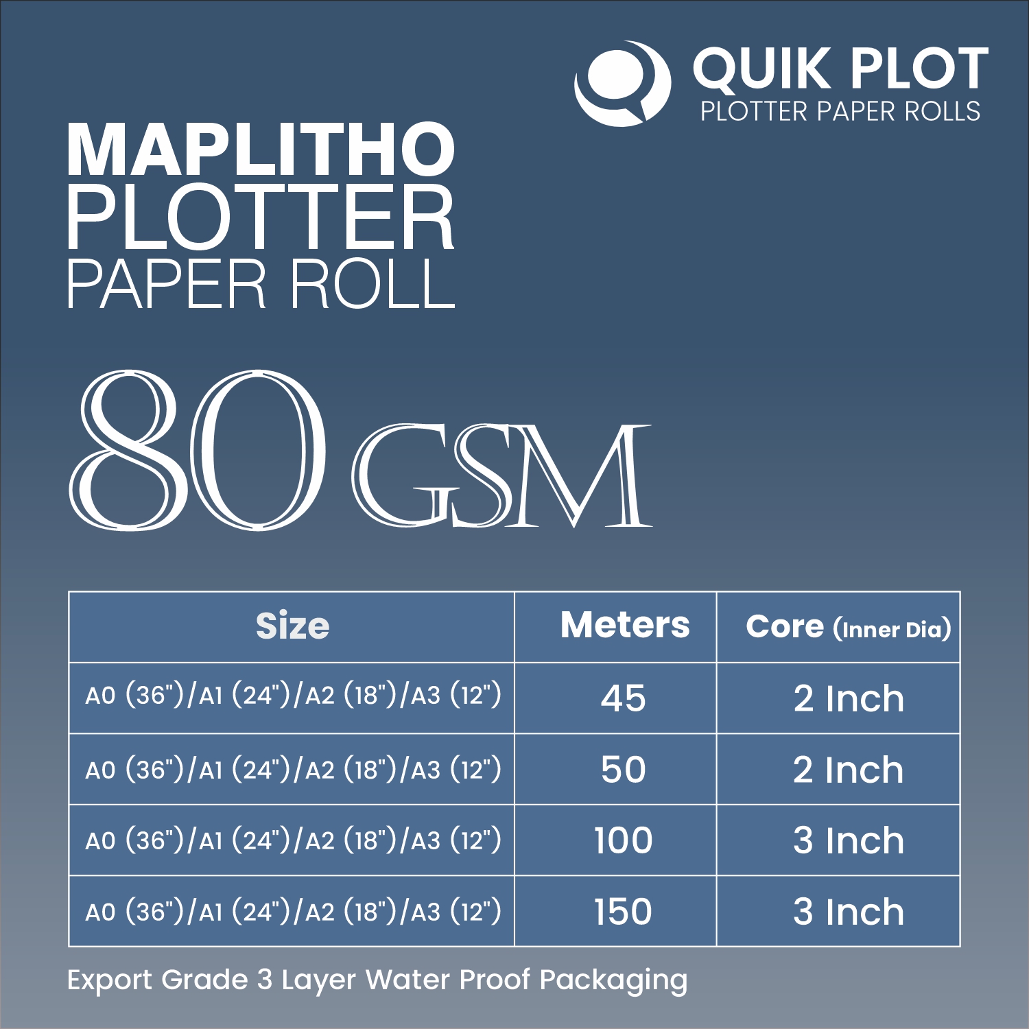 Maplitho Plotter Paper Rolls are high-quality, large-format paper designed for precise and professional printing applications. Ideal for use in inkjet and laser plotters, these rolls deliver crisp, smudge-proof, and detailed outputs—perfect for engineering, architectural, and design professionals. Each roll is packaged with export-grade 3-layer waterproof protection to ensure product safety and quality during storage and transport